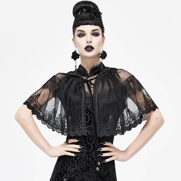 Devil Fashion Women’s Wear Dark Lace Mesh Hooded Cloak
