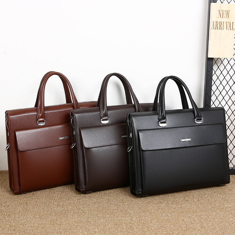 Product information: Pattern: solid color Lining texture: Polyester Color: Black, Brown, khaki, black pattern cloth, blue pattern cloth Function: anti-theft, reducing burden Material: pu Popular elements: letters, locks Size: Packing list: Leather men’s briefcase * 1 Product Image: