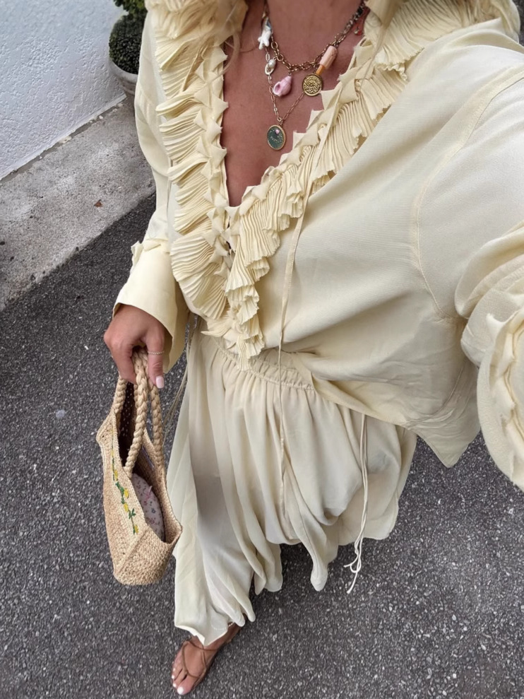 Ruffled Pleated Top And Skirt Elegant Casual Women’s Suit