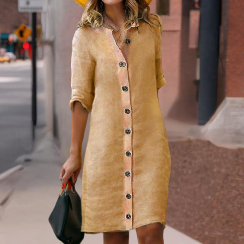 Be the first to review “Women’s Solid Color Shirt Collar Mid-Sleeve Dress With Oversized Buttons – Simple & Elegant Spring&Summer Dress”